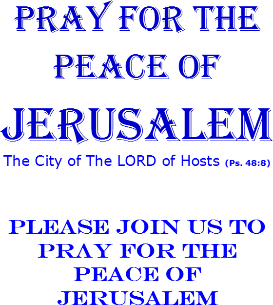 As a result, God is right there waiting for you to bring your supplication to Him on behalf of the peace of Jerusalem. By obediently praying for Jerusalem you will harvest the peace of God and genuine prosperity will be reaped upon you from the Eternal Rock of Ages; not the false hopes which only a sin sick world can offer.